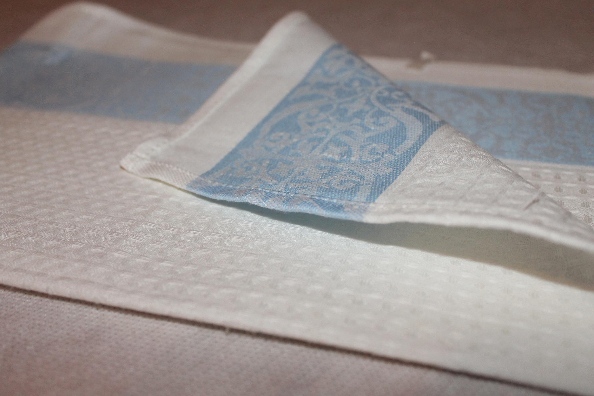 Flax linen towel Neapol. Light blue color ornament. Size 45x70 cm. Contain 51% flax, 49% cotton.